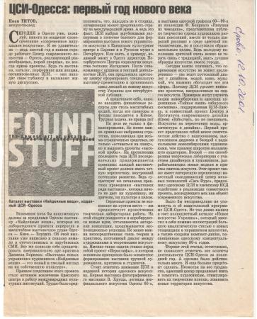 Center of Contemporary Art-Odessa. The first year of the new century. 2001 Related projects Founf stuff