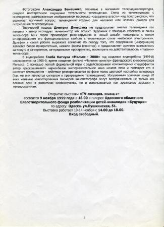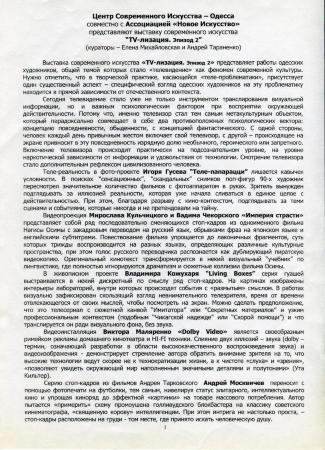 "TV-лізация. Епізод 2". Прес-реліз до проєкту. Олена Михайловська, Андрій Тараненко