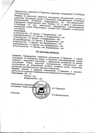 Протокол №1/99 Засідання загальних зборів Асоціації "Нове мистецтво"